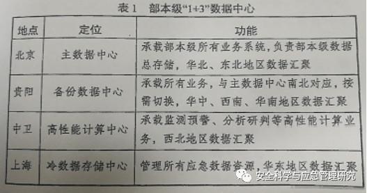應(yīng)急管理部統(tǒng)一組織建設(shè)“1+3” 部本級數(shù)據(jù)中心。基于國家網(wǎng)絡(luò)資源、節(jié)能、人才資源儲備、政策環(huán)境、成本、自然災(zāi)害發(fā)生頻率等因素綜合考慮,具體包括北京主數(shù)據(jù)中心和貴陽備份數(shù)據(jù)中心、上海冷數(shù)據(jù)存儲中心、中衛(wèi)高性能計算中心,預(yù)計來來5年達(dá)到千PB級數(shù)據(jù)存儲及相應(yīng)運算能力,為部本級、國家煤礦安監(jiān)局、中國地震局、消防救援局、森林消防局及有需求的地方應(yīng)急管理部門提供數(shù)據(jù)存儲和計算資源。“1+3"數(shù)據(jù)中心的定位和功能見表1。